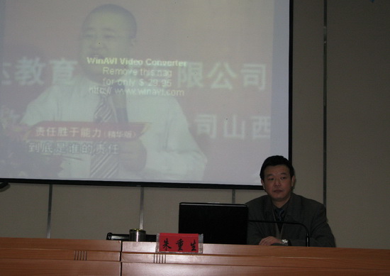 12月1日星期二晚6:30,经济贸易系系主任、副教授朱重生老师在院图文信息中心一楼报告厅主讲了一场长约2小时关于“责任”的专题讲座。