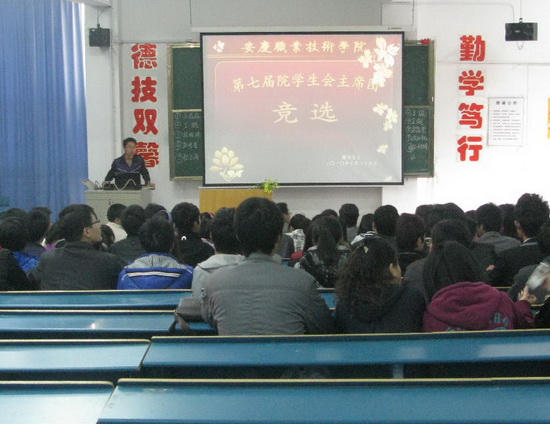 10月29日中午,院学生会第七届主席、常务副主席竞选在二号教学楼216教室举行。院党委委员、副院长毕明生亲临现场观摩了整场竞选。院团委第二届委员会全体委员、院学生会代表及各系部学生代表出席本次竞选活动。