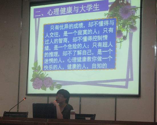 9月25日晚6:30,入学教育活动中的“心理健康教育”专题报告会如期进行,本次讲座由柴文君老师主讲,全院600余名新生代表聆听了讲座内容。 柴老师结合多年来从事心理健康教育的经验,帮助同学们梳理和分析了大学新生的心理现状,人际交往的原则;指出了同学们在学习生活中可能会遇到的一些问题,并指导同学们正确对待。 柴老师的讲座理论联系实际,贴近生活,语言生动,最后在掌相学讨论中愉快地结束本次内容。