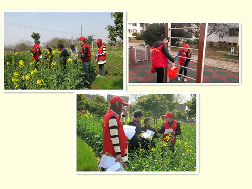 清扫校园垃圾 服务全校师生 3月7日下午1:30,同学们着统一校服在学生会、团总支干部的带领下来到学校每个角落进行卫生清扫活动,活动中,大家相互合作,不怕脏不怕累,把捡到的垃圾装进袋子里,清理每个卫生死角,同时,同学们将系部会议室、教师们的办公室卫生进行仔细打扫,转眼间,学校里的林间小道、草坪深处均已不见塑料袋、瓜皮纸屑的踪影,生活橱窗上的小广告被清理得干干净净,而他们也成了校园里一道亮丽的风景。 普及植保知识 真诚服务三农 3月9日下午,园林园艺系植物保护专业十余名同学,在系部专业老师的带领下,来到安庆市迎江区老峰镇为当地农民提供农业知识指导活动。 此次活动主要结合当前农事季节,针对油菜、小麦中后期如何科学管理等问题与农民朋友一起探讨交流,重点讲述油菜菌核病、霜霉病、白粉病的发病特点、症状及防治技术,集发病叶片和病原物。活动结束时,同学们还给当地农民们发放了宣传单页。(文/甘慧玲、黄继腾、图/戴俊杰)