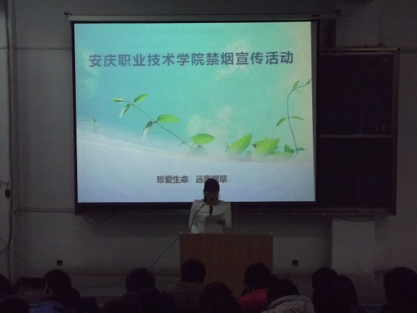 3月12日下午,机电团总支在216教室举行了“创建无烟校园,享受健康生活”的禁烟宣传活动,12、13级各班共200余名学生代表参加此次活动。 活动通过播放视频、图片等形式向同学们宣传吸烟的危害性、戒烟的重要性以及如何戒烟等知识。呼吁同学们远离香烟。在全院上下形成一股自觉抵制香烟的良好风气,倡导健康文明的生活方式,构建卫生和谐的校园。 此后,机电系团总支学生会还将成立校园禁烟巡查队,与在教学区、宿舍等地吸烟现象进行坚决斗争。(文/李承鹏)