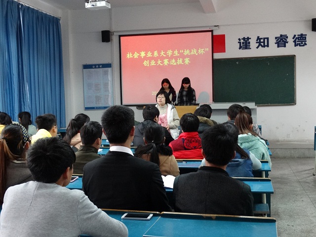 3月19日至20日,社会事业系举办2014年大学生“挑战杯”创业大赛选拔赛。系团总支负责人、就业工作人员及部分教研室老师担任此次比赛的评委。