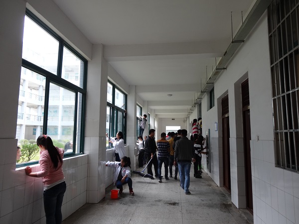 10月28日中午,电子信息系动员全系学生,在辅导员、班主任带领下,对教室、宿舍全面清扫,清除卫生死角。经过一中午师生共同努力,整个教学管理区面貌焕然一新:地面、门框、桌椅擦洗一新,玻璃明亮,课桌椅摆放整齐。系领导现场督导,并要求同学们全天候保洁,以良好的精神面貌,为学院示范总结验收暨人才培养个性化评估争光添彩。