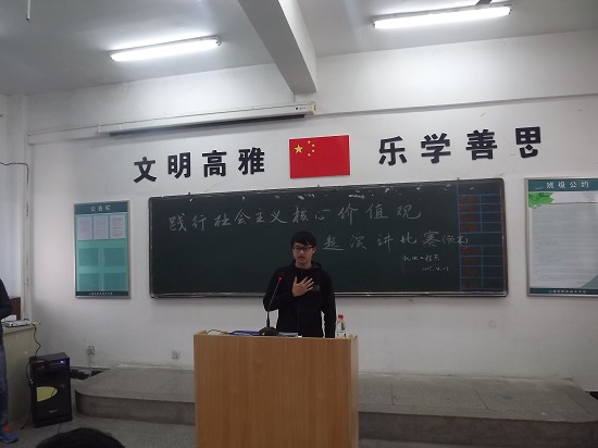 此次比赛共有21名选手报名参加,系团总支负责老师应邀担任此次比赛评委。选手们以爱国、富强、民主等为演讲主题,进行了精彩的演讲,演讲有声有色,每个人都将自己融入演讲这一角色中,把自己的梦想和祖国的强盛、社会的发展,人民的幸福紧紧地联系在一起,表达了自己对祖国的热爱。比赛结束后评委老师对各位选手进行了点评。 此次活动既使同学们深刻领悟社会主义核心价值观的内涵,也让他们懂得要从平时的一点一滴做起, 用实际行动来体现社会主义核心价值观含义,又能在思想感情上认知认同,在学习生活中遵循践行,使社会主义核心价值观深深融入大学生的思想意识、精神世界,并运用于学习生活之中。(文、图/王影)