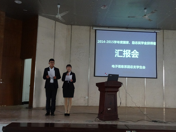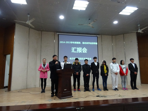 十位获奖学生代表结合各自的成长经历,从学习方面、生活方面、工作方面、实践活动等方面,通过图文并茂的PPT,讲述着自己奋斗的历程,向大家充分展示了当代优秀大学生的形象。2014级计算机1班的徐义与大家分享了一个关于苦难、奋斗和成长的故事,逆风飞翔,迎接挑战。 十位同学的报告催人奋进、斗志昂扬,他们用朴素的事迹和永不言败的精神深深打动了大一的学弟学妹们,会场内掌声迭起,通过亲身感受身边榜样的优秀事迹,同学们纷纷表示,一定要向国家奖学金、国家励志奖学金获得者学习,努力做到“学习先进、争当先进、赶超先进”!