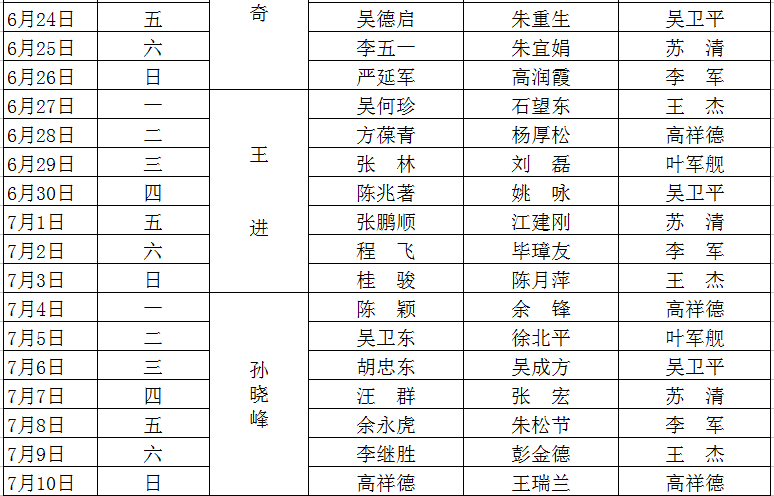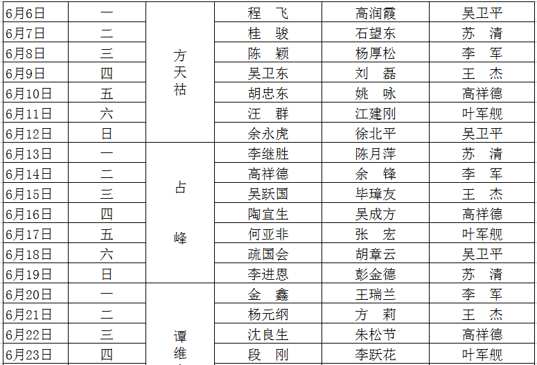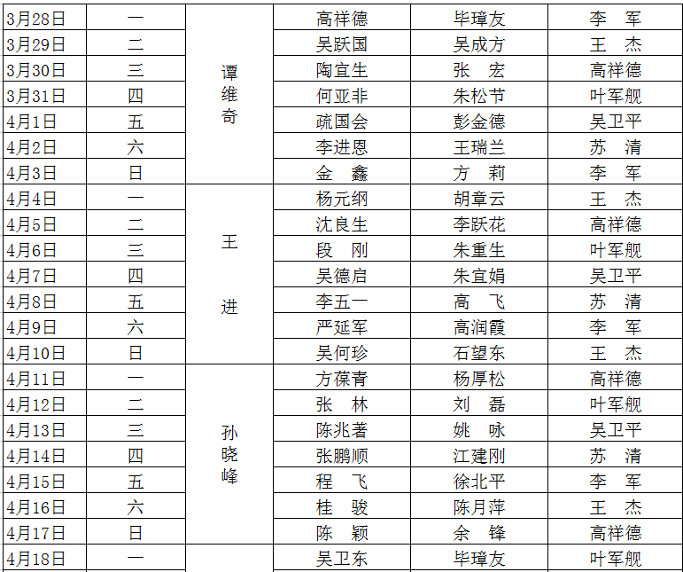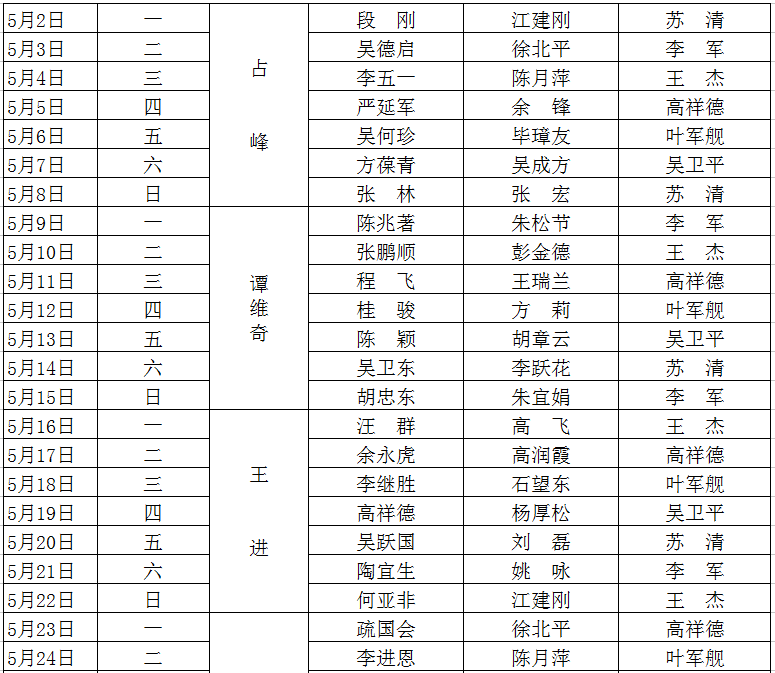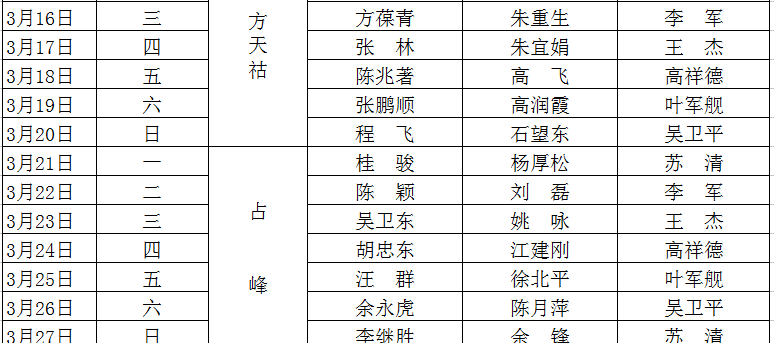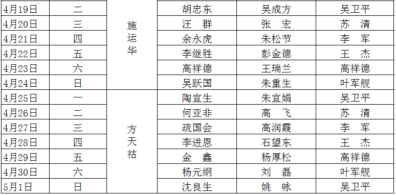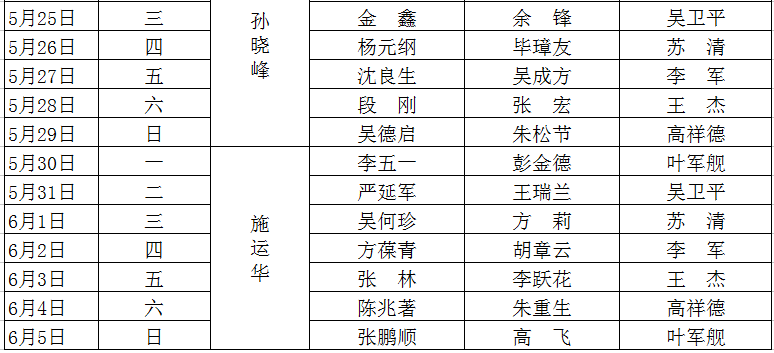 2015-2016学年度第二学期值班表