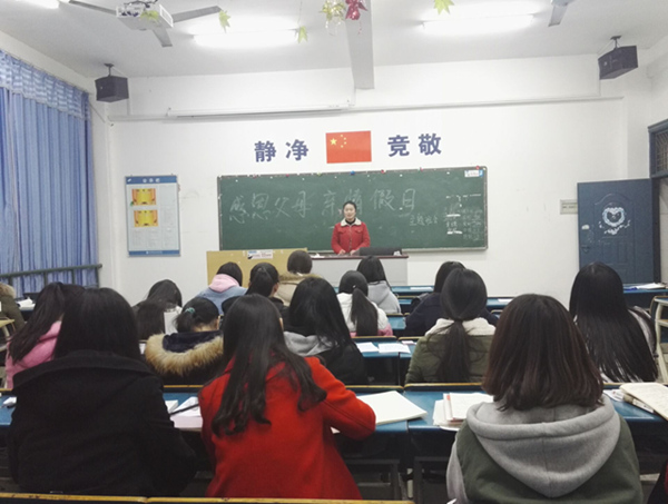 本次班会活动以主持人真实而感人的致词开始,点明 “感恩”主题,并请学生朗读了有关于父母亲的一系列感人故事,当主持人问到“说出你最想对父母说的话”、“该如何的报答父母”时,同学们纷纷踊跃发言,表示父母工作很辛苦,自己远离父母在外求学,非常想念父母,在今后的学习中必定努力,用优异的成绩来报答父母养育之恩。个别班级与学生进行了小游戏――写出自己心目中最重要的五个人,同学们在游戏的过程中更加深刻的明白了“孝为感亲恩”的意义。 本次班会不仅表达了同学们对父母的感恩之情,也使同学们深刻领悟到了感恩对人生成长的重要意义。此次班会结束后,同学们纷纷表示一定会常怀感恩之心。