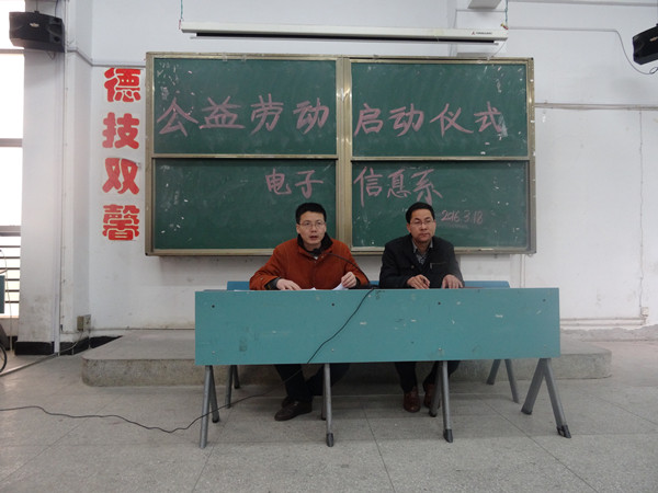 会上,教务科负责同志向同学们详细讲解了公益劳动周的工作计划、安排、劳动内容。团总支书记强调了公益劳动周进行的意义和目的所在,并对学生提出了几点要求:一是提高公益劳动的认识,要求同学们调整心态,从小事做起,养成良好的劳动习惯,培养吃苦耐劳的精神;二是组织完成好此次劳动任务,学生要服从领导、辅导员、班干部的安排,完成劳动任务;三是做好考勤工作,完成考核任务;四是注意劳动安全。 通过此次启动仪式,带动了广大同学参加劳动的积极性,同学们精神饱满,斗志昂扬,纷纷表示在劳动周中一定按时按质按量完成任务,让我们的老师、同学们学习生活在洁净的校园环境中。