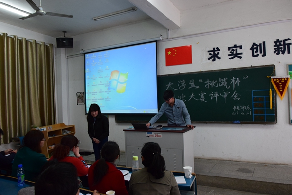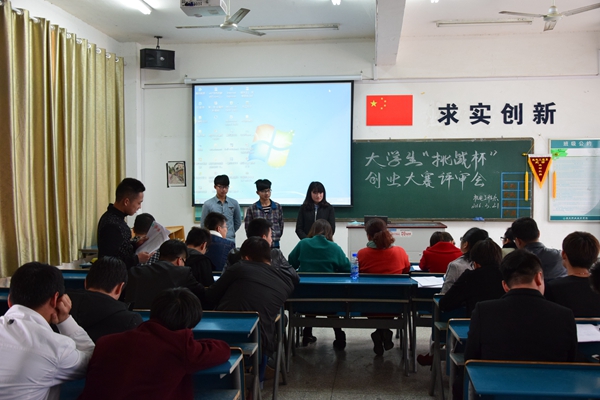 参赛选手结合制作精美的PPT,针对企业概述、业务与业务展望、风险因素、投资回报、组织管理、财务预测等内容进行了全面介绍,激情洋溢地阐述了自己的创新思维与创业理念,并对评委现场提出问题进行解答。2014级机电一体化专业沈忱同学带领团队成员,以当下社会热点问题――“室内环境净化”为切入点,以我院鲍满腔老师研发的新型“风压机”为技术支撑,结合本专业特色发起《爱享环境科技有限公司》项目,为家庭、医院、办公室等提供干净,舒适的空气。选手们精彩的表现,激情的演讲,缜密的思维,得体的肢体语言,不时博得现场观众的热烈掌声。 比赛结束后,指导老师进行了总结,肯定了同学们的目标,同时指出目标实施不完善之处,并鼓励同学们为目标努力,争取在接下来比赛中取得优异成绩。