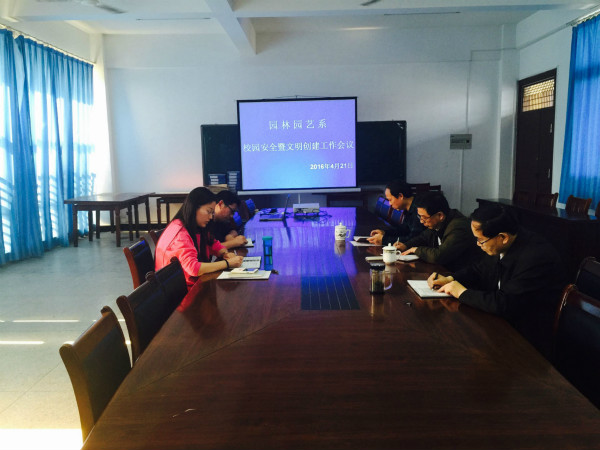 为学习落实学院校园安全暨文明创建工作会议精神,部署系部文明创建工作,4月21日下午,园林园艺系组织领导班子召开校园安全暨文明创建工作会议。 会上,分管学生工作负责同志首先传达了学院校园安全暨文明创建工作会议精神,带领大家学习了王进书记在会上就校园安全和文明创建工作提出的十点要求。之后,参会同志就如何结合系部具体实际,落实并推进文明创建工作展开了热烈的讨论,大家纷纷建言献策,提出了许多宝贵的意见和建议。 系主任毕璋友最后总结提出,系部要根据学院工作要求,细化工作目标,制定系部文明创建工作方案,教师教学和学生管理要齐抓共管,统筹协调,在具体活动和工作中推进系部的文明创建工作。