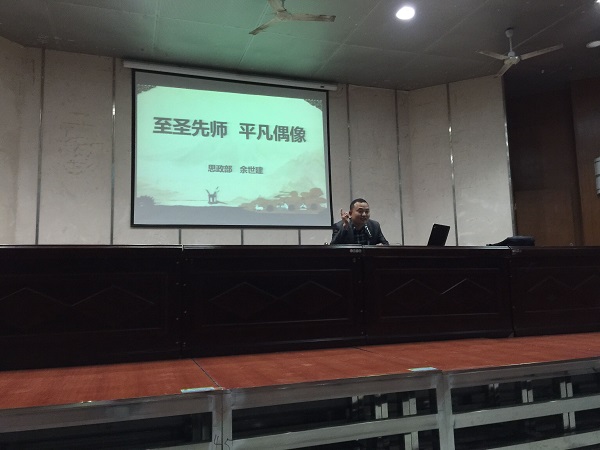 余世建从孔子的出生和周游列国、问礼从政、投身教育的人生阅历向同学们简单介绍了先师的生平;谈到了孔子对历史的影响,以及国内外对孔子的高度评价;着重阐述了孔子的“仁爱”、“中庸”、“孝”的思想和“因材施教”、“学思结合,知行统一”的教育理念;此外,他还从不一样的角度向大家展示了一个快乐、自由浪漫、社会实践家、性情中的孔子。余世建认为,孔子之所以能成为圣人不是因为他是英雄,也不仅是源于他的智慧仁德,而是在于他在一个礼崩乐坏的时代里,敢于坚持自己的见解,将目光投向人民,虽颠沛流离却不改变自己的志向,知不可为而为之。他是为自己心灵而战的勇士,是为自己灵魂而前进的侠客。 讲座风趣幽默且充满激情、精彩纷呈,激发了同学们对文学的浓烈兴趣,同学们表示感受颇多,意犹未尽。(文/陈颖)
