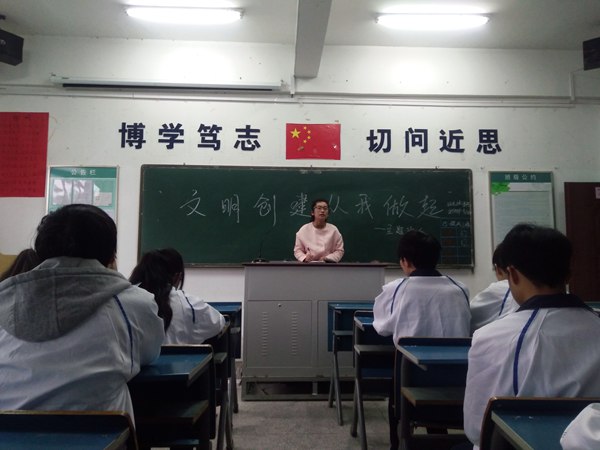 会议伊始,辅导员向同学们传达了院系文明创建相关文件精神,号召全体同学以实际行动积极参与到文明创建工作中去,自觉培育和践行社会主义核心价值观,坚持立德树人,为争创文明班级做出自己应有的贡献。班会中,各班同学结合具体实际情况,就落实和推进文明创建工作展开了热烈的讨论,大家纷纷建言献策,提出了许多宝贵的意见和建议,一致认为文明创建工作是一个长期艰巨的任务,要持之以恒,要根据本班具体情况循序渐进,需要从自身做起,全体同学共同努力,全力投身到文明创建中, 学生干部要充当文明建设中的先锋和模范,最终实现文明和谐校园的目标。