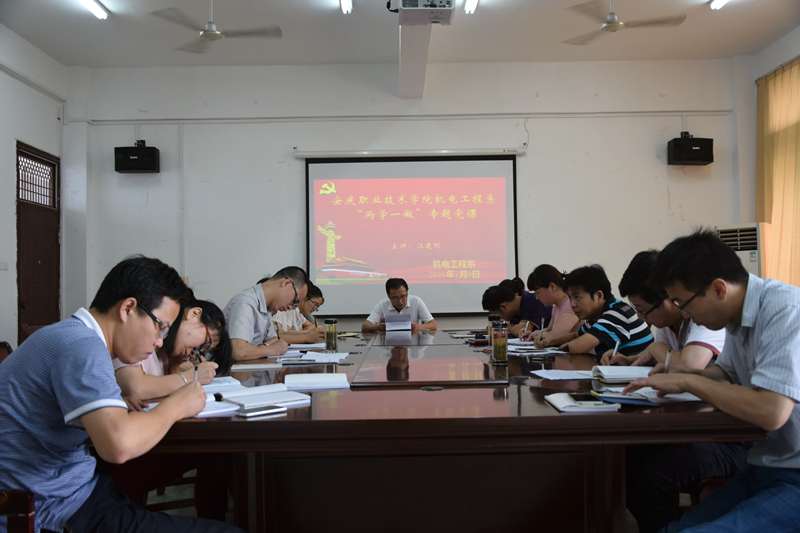 机电系总支委员、副主任江建刚老师以习近平总书记的话“做党和人民满意的好老师”为标题,用通俗易懂,生动活泼的语言,丰富详实的事例带领广大党员教师深入学习习总书记对教师提出的四点要求:第一,做好教师,要有理想信念;第二,做好教师,要有道德情操;第三,做好教师, 要有扎实的学识;第四,做好教师,要有仁爱之心。之后结合自己从教多年的经验,阐述了面对党和人民的要求,要努力做一名用自己的行动倡导社会主义核心价值观,用自己的学识、阅历、经验点燃学生对真善美的向往的老师;做一名有高尚道德修养,公正待人,公平处事的老师;做一名知识功底扎实、教学能力过硬、教学态度勤勉、教学方法科学的老师;做一名具有仁爱之心,尊重信任学生,让每一个学生都能享受到成功的喜悦的老师。“ 此次党课使得全体教师党员进一步深刻领会习近平总书记对广大教师提出的“做党和人民满意的好教师”的内涵和根本要求,进一步增强全体教师党员的责任感和使命感,自觉地在工作中“做党和人民满意的好老师”,全面提高教育教学质量。努力打造出一支师德高尚、业务精湛、人民满意的教师队伍,在教书育人的工作中不断创造新业绩。(文/李承鹏 图/张小康)
