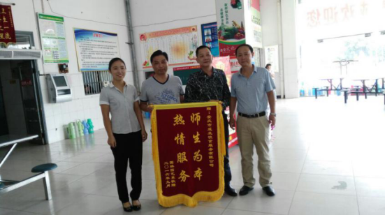 近日,园林园艺系毕璋友主任以及张宏书记向学院餐饮服务中心(安庆市成发饮食服务有限公司)赠送印有“师生为本,服务热情”的锦旗,表达园林园艺系师生对成发饮食服务有限公司的感谢。 为了全面提升园林园艺系植物保护专业学生的综合技能,推进实施“柔性学期,三梯实践”人才培养模式,该系2015级植物保护专业师生于2016年7 -8月暑假期间留校正常上课。在暑假上课期间,该专业师生深深感受到成发饮食服务有限公司的优质服务,餐厅全体职工的努力和辛勤汗水,为学生集中精力学习提供了良好的保障。成发饮食服务有限公司余经理代表餐厅接受了锦旗。他说,收到锦旗倍受鼓舞,同学们的认可和表扬是全体职工的荣耀,今后将会更加努力,为同学们提供更好的服务。 园林园艺系毕璋友主任、张宏书记、系部相关老师、植保专业学生代表,以及成发饮食服务有限公司的全体职工参加了简洁而热情的赠旗仪式。(文/汪尧航 图/叶红玲)