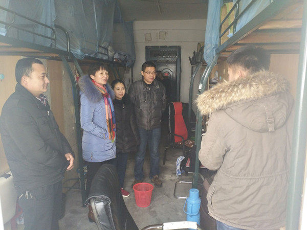 走访期间,李书记一行详细询问了宿管员我系学生的离校情况,重点检查学生寝室的门窗的关锁情况,并安排辅导员老师要通过短信、QQ、微信等工具叮嘱同学们放假期间确保人身财产安全,提醒同学们在假期养成良好的生活习惯,督促学生完成“亲情假日,感恩父母”征文以及“过新年读好书”读书笔记活动,确保学生过一个安全、健康、有益、愉快的寒假。