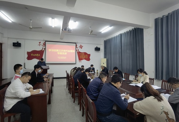 为进一步传达bv伟德国际1946第三次党代会精神,使全体教职工时刻谨记学校今后5年发展的指导思想、行动目标及具体措施,凝聚起团结奋进的共识,汇聚起努力拼搏的合力,机电工程学院党总支于4月15日下午在1号教学楼208会议室组织了专题党课,认真学习了校党委书记童宏葵在党代会上所作题为《抢抓机遇 踔厉奋发——为加快创建本科职业技术大学而不懈奋斗》的工作报告。此次专题党课由学院党总支副书记李承鹏主讲,全体师生党员参与。