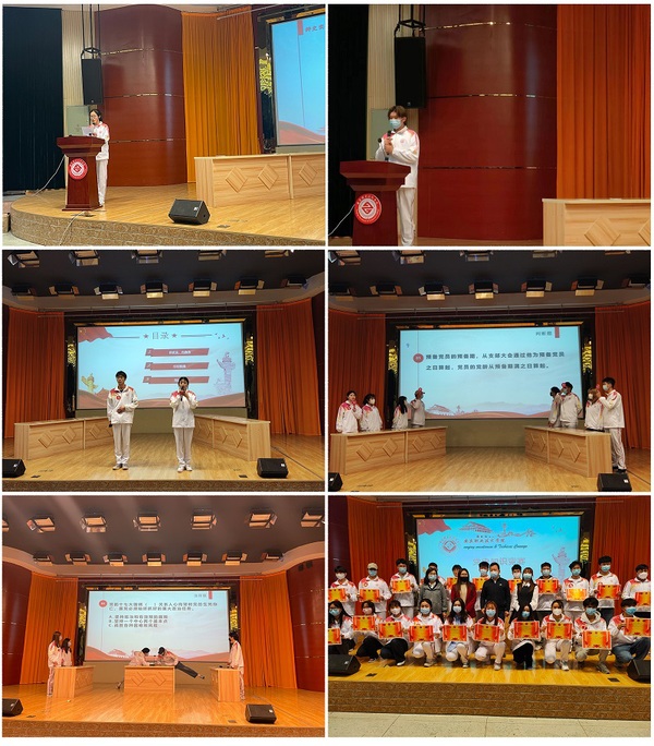 以赛促学,以赛促进,本次党史学习教育通过两个阶段分线上线下进行。师生寒假以来线上通过手机扫码进入学习考试,出题、评题、建线下考试题库,同学们广泛关注和踊跃参加;四月份所有入党积极分子们信心满满地走进笔试、现场竞赛的线下两个赛场,笔试成绩前六十名选手组团晋级参加现场竞赛,竞赛中,比赛分团队依次按辨史实、你划我猜、抢答等环节进行,大家答题你追我赶,比分异常激烈,通过六轮角逐,最终决出一、二、三名。