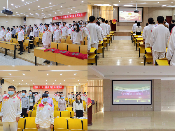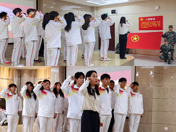 活动在雄壮的国歌声中拉开序幕。主持人宣读新团员名单后,与会老师为新团员颁发团员证和佩戴团徽。全体新团员在团总支书记的带领下面对鲜红的团旗,高举右拳,庄严宣誓:“我志愿加入中国共产主义青年团,坚决拥护中国共产党的领导,遵守团的章程,执行团的决议,履行团员义务,严守团的纪律,勤奋学习,积极工作,吃苦在前,享受在后,为共产主义事业而奋斗。” 誓言铮铮,激扬青春。
