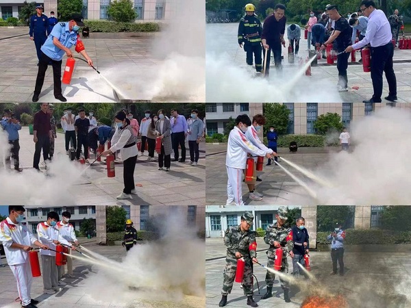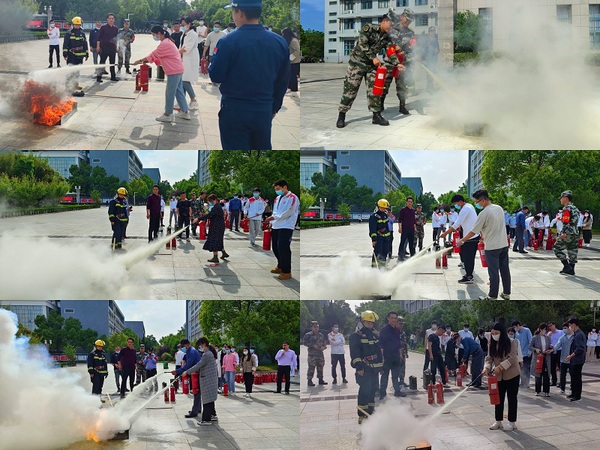 按照省、市委和校党委关于创建平安校园要求,切实提高全院师生在遇到火灾、地震等突发事件的应变能力和逃生自救技能,增强师生在火灾中互救、自救意识,维护校园安全稳定,依照“青春护航 ——无烟机电·无诈机电·无患机电”创建实施方案中“十个一”的步骤要求, 4月26日下午,机电工程学院联合校保卫处邀请到经开区消防救援大队义津路消防站的消防官兵为师生们开展了一堂生动的消防安全教育及演练活动。校保卫处副处长叶军舰,机电工程学院党总支副书记李承鹏,机电工程学院学工人员、专兼职辅导员、各班义务消防队员、学生干部,保卫处及物业工作人员等60多名师生员工参加。