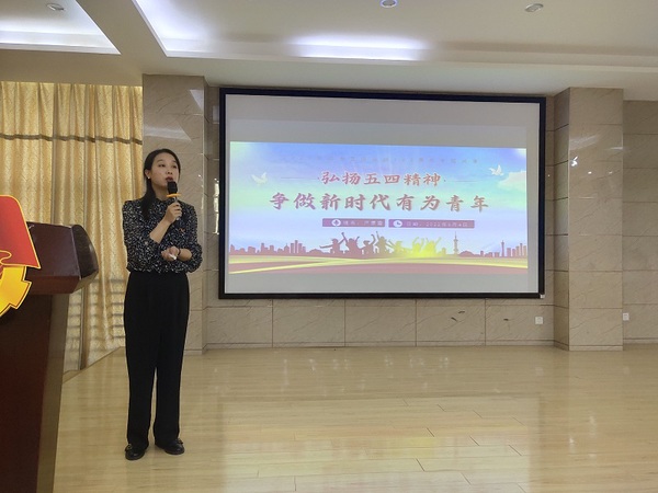 该院团总支书记严彦蕾代表该院团总支向大家致以节日的问候和美好的祝愿。在五四前夕,习近平总书记在考察调研中国人民大学时勉励全国广大青年牢记党的教诲,立志民族复兴,不负韶华、不负时代、不负人民,在青春的赛道上奋力奔跑,争取跑出当代青年的最好成绩。就如何跑出最好成绩,她向广大团员青年提出三点倡议:一是在实干担当中坚定理想信念,做冲锋向前的奋进者。团员青年们要以思想为灯,照亮前行的路;要以红色铸魂,点燃星星之火;要以梦想为帆,汇聚磅礴力量。二是在踔厉奋发中笃行不怠,做乘风破浪的开拓者。《新时代的中国青年》白皮书的首发和新《职业教育法》的修订和实施,为我们职业院校的青年提供一个实现人生出彩的优质平台,团员青年们要吹响迎难而上的铿锵号角,书写奋斗担当的昂扬篇章,绽放勇挑重担的绚丽之花。三是在改革创新中逐梦前行,做与时俱进的奉献者。团员青年们要担当时代责任,勇于砥砺奋斗,练就过硬本领,锤炼品德修为,以时不我待的热情,昂扬向上的斗志,只争朝夕的干劲,奋力拼搏,激昂青春,奋力书写新时代青年的崭新篇章。