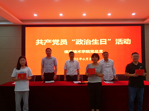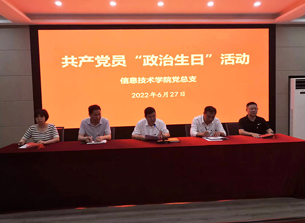 在“七一”党的生日即将到来之际,为进一步激发党员的政治热情,增强党员的责任感和使命感,强化党员的宗旨意识,保持不忘初心,继续前行,6月27日下午,信息技术学院党总支在2#216开展“党员政治生日”主题党日活动,为全体党员过集体“政治生日”,共话入党初心,共担责任使命。活动由党总支书记疏国会主持,全体党员参加活动。