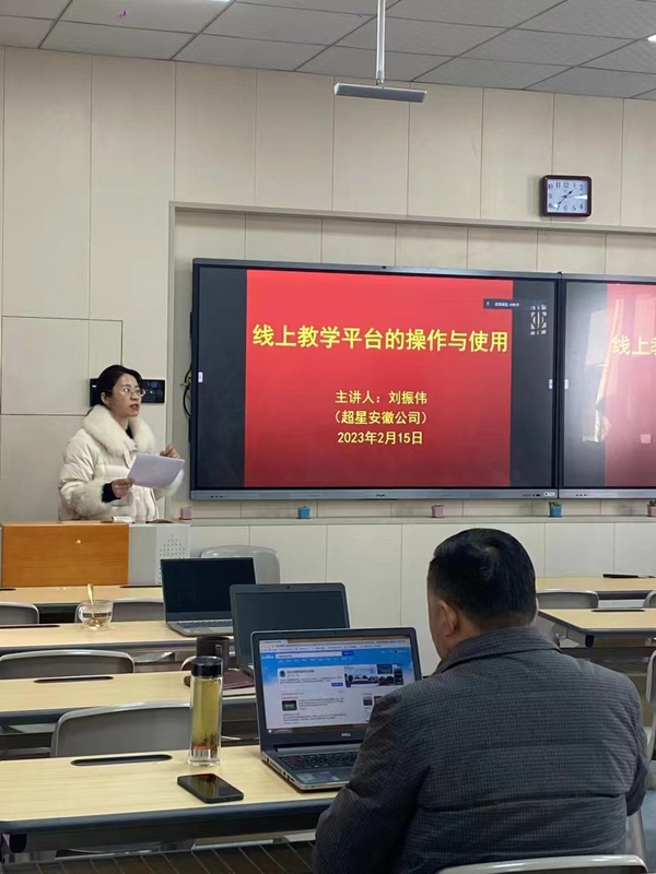 2月15日,管理服务学院在3号教学楼308教室开展“一师一优课”线上精品课程建设暨线上教学平台的操作与使用培训会。本次活动采用线上线下相结合形式进行,特邀超新安徽公司刘振伟经理作“线上教学平台的建设与使用”专题讲座,管理服务学院党总支书记、院长陈颖,党总支副书记丁凡,以及全体教职工在308教室现场参加培训,副院长李敏主持培训会。
