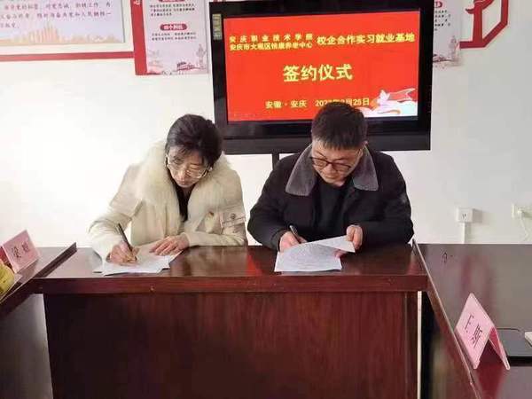 2月25日上午,管理服务学院与安庆市大观区怡康养老中心举行校企合作实习就业基地签约暨挂牌仪式。管理服务学院党总支书记、院长陈颖,副院长李敏,党总支副书记丁凡,安庆市大观区怡康养老中心董事长王荣平、中心负责人王斯,管理服务学院学生管理工作人员,及智慧健康养老服务专业师生20余人参加仪式。