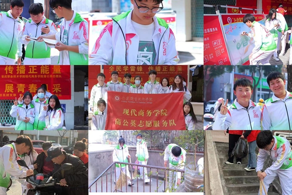 强化创新,广泛开展活动。现代商务学院把追“锋”志愿服务活动同学生日常学习、生活紧密结合起来,确保取得实效。一是在校外联动上下功夫。3月3日,与安庆市秦潭湖公园管理处合作开展“践行雷锋精神 共创美丽秦潭”主题活动,聚焦保护环境、垃圾分类,共建美丽秦潭湖;3月5日,与安庆市东正社区团支部合作开展“弘扬雷锋精神 爱与奉献同行”志愿服务活动,聚焦走进社区、为民服务,开展社区环境整治,为东正社区居民办实事、办好事,提升居民的幸福感。二是在班级互动上想办法。学院倡导各班级之间通过观影体验、心得交流、辩论讨论、主题竞赛等活动形式结合雷锋精神的学习和传承,让雷锋精神融入学习生活中去。