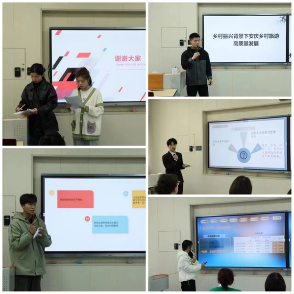 “挑战杯”竞赛启动以来,我院师生积极参与,此次竞赛共有六支队伍参加,题材涉及养老服务、乡村振兴背景下安庆旅游高质量发展等主题。参赛团队通过PPT汇报、现场问答两个环节进行展示。评委老师对每个项目都进行了专业的点评和指导,他们对选手的表现给予了充分的肯定;就如何提升作品的实践性、创新性和实效性,提出了有针对性的意见和建议,为师生明确着力点,打磨提升参赛作品质量提供了思路。