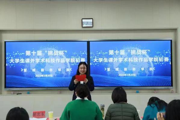 为深入学习宣传和贯彻党的二十大精神,切实推进伟德官网第十届“挑战杯”竞赛工作,进一步引导管理服务学院学生努力培养科学精神和创新意识,3月20日我院在308教室举办了第十届“挑战杯”全国大学生课外学术科技作品竞赛选拔赛。院长陈颖及评委老师、项目指导老师出席活动,参赛选手及学生代表50余人参加活动。