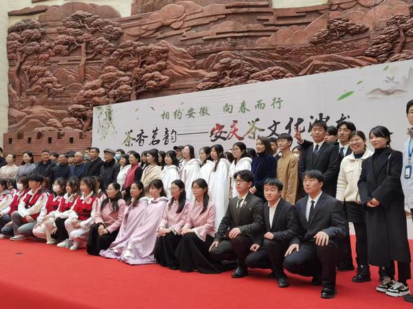 3月24日上午,由安庆市文化和旅游局指导,安庆博物馆、安庆市文化馆、安庆市非遗保护中心、安庆博物馆之友共同主办多家文化单位协办的“茶香茗韵--安庆茶文化沙龙”在安庆市博物馆一楼中央大厅举行。bv伟德国际1946管理服务学院2021级酒店管理与数字化运营专业师生近100人受邀参加活动。
