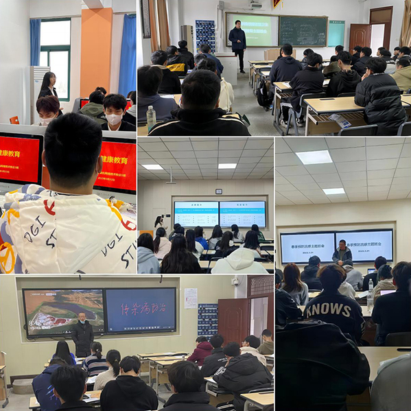 各班级召开主题班会,充分利用问卷调查、知识问答等多种形式向同学们宣传普及了春季易发主要疾病类型,新冠病毒及甲型流感等主要传染病的传播途径和症状特征,详细介绍了春季传染病的预防方法和处置措施,提醒同学们要及时添加衣物,坚持教室、寝室每天开窗通风不少于四次,以保持空气流通,同时还要加强体育锻炼,注意个人卫生,养成良好的生活行为习惯。