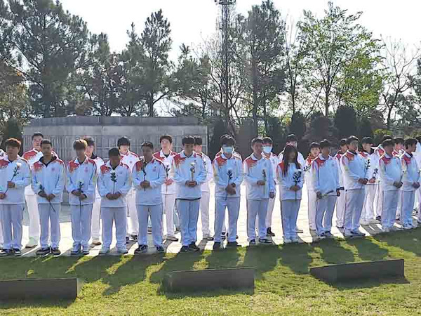 敬献鲜花和宣誓等环节,一张张珍贵的历史画面如幻灯片一样在脑海中浮现,革命烈士的英勇、乐观、为了祖国和人民视死如归的精神力量深深震撼了在场的每个人。此刻,全体师生肃立在烈士墓前,悼念无数为了今天的幸福生活而英勇捐躯的英雄。