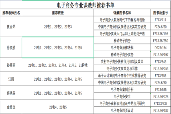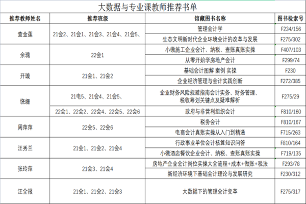 现代商务学院组织本学院六个专业的专业课教师给授课班级的学生开书单,将学生借阅情况和读书心得计入平时成绩考核,“专业课教师给学生开书单”的活动可促使学生放下手机走进图书馆借阅图书,补充提升专业知识,接触更多的前沿理论,促进学生深入思考;另一方面,号召教师为学生开书单,教师必须要先于学生走进图书馆查阅书籍,了解图书馆藏书类目,才能更好地为学生开出能拓宽专业知识面、加深专业内涵的好书,所以“教师进图书馆选书借书”的活动使教师更好地发挥言传身教的引领和表率作用。两项活动互相促进,更好地诠释了教学相长的深刻涵义,促进了教师和学生共同进步。