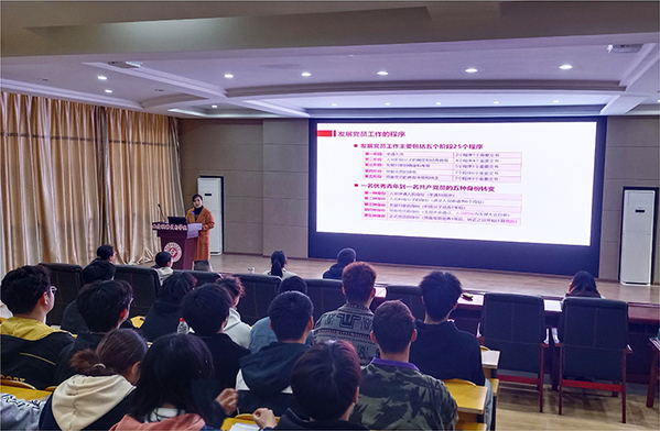 第一党支部书记陶健林、第二党支部书记李立分别带领入党积极分子学习了党员发展流程,并介绍培养人和积极分子相互认识。会上,2022级动漫制作技术2班杨龙、2022级大数据技术1班余文静两位同学作为入党积极分子代表发言。他们表示,作为一名入党积极分子要不断加强政治理论学习,提高党性意识,以党员标准严格要求自己,争取早日加入党组织,成为一名合格党员。