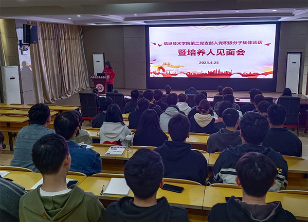 为进一步做好入党积极分子的培养考察工作,帮助入党积极分子提高党性修养,4月25日中午,信息技术学院第一党支部、第二党支部分别在206党员活动室和216信仰报告厅举办了第32期入党积极分子与培养人见面会。全体党员教师及第32期入党积极分子参会,会议由各支部书记主持。