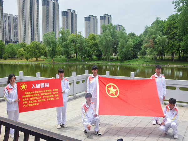 在鲜艳的团旗下,该院团总支书记凌俊带领新加入团组织的同学们庄严宣誓:“我志愿加入中国共产主义青年团,坚决拥护中国共产党的领导,遵守团的章程,执行团的决议,履行团员义务,严守团的纪律,勤奋学习,积极工作,吃苦在前,享受在后,为共产主义事业而奋斗。”铮铮誓言,将大会推向高潮,全体团员朝气蓬勃,斗志昂扬。