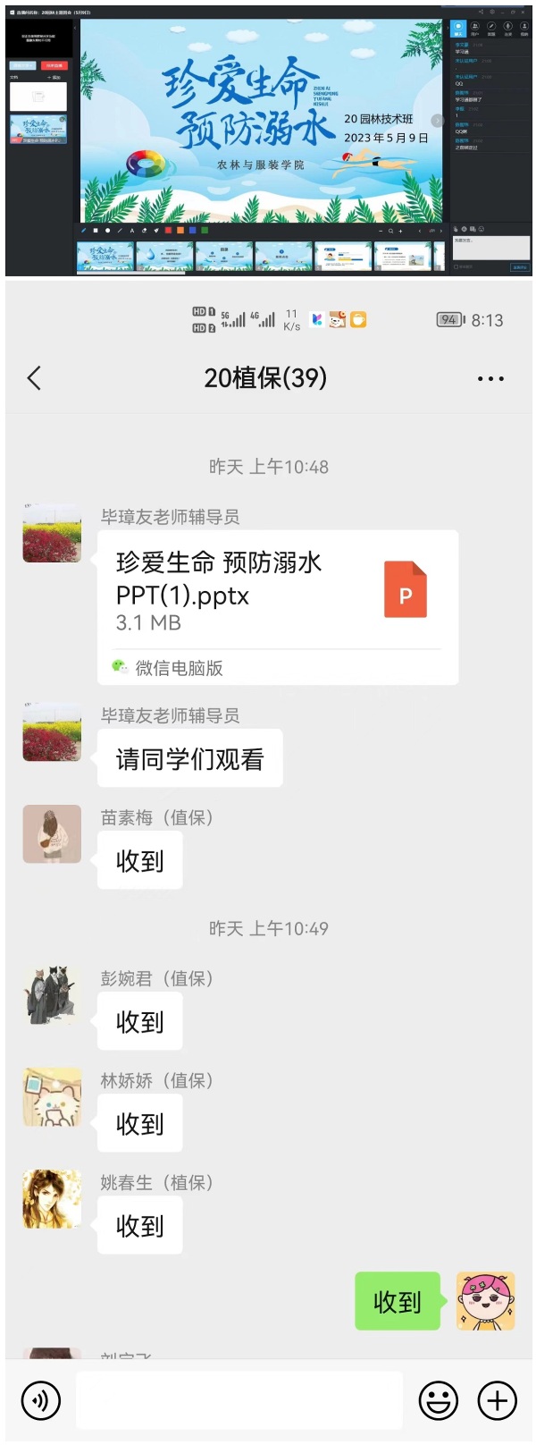 通过线上线下、多层次、多渠道开展的防溺水宣传教育活动在学院形成浓厚的氛围。 同时,此次防溺水宣传教育活动的开展,也增强了同学们的防溺水防范能力。(文:唐 玲 图:农林与服装学院各专业班级 审稿:许咏梅)