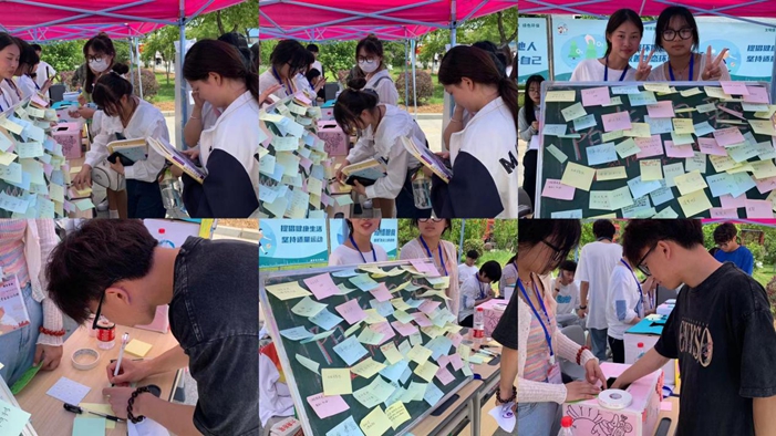 过分压抑会使情绪困扰加重,适度宣泄则可以把不良情绪释放出来,从而使紧张的情绪得以缓解、放松。活动的第二环节为“心灵漂流,坏情绪回收站”。同学们通过在便签上写下困扰自己的负面情绪内容,投入烦恼箱,活动工作人员给予其积极的鼓励与引导帮助参与者打开心结,放松身心。