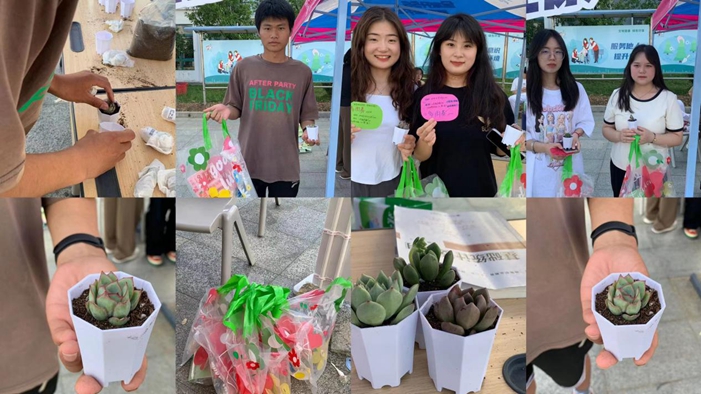 “良言一句三冬暖,恶语伤人六月寒”,一份来自他人的关怀与鼓励可能会让失意的人振作、给痛苦的人慰藉。活动的高潮部分为“陌生之心,最温暖的关怀”,工作人员通过积极地引导来往的同学们在展板上留下暖心之语,并且分发了多肉盆栽等作为本次活动的伴手礼。