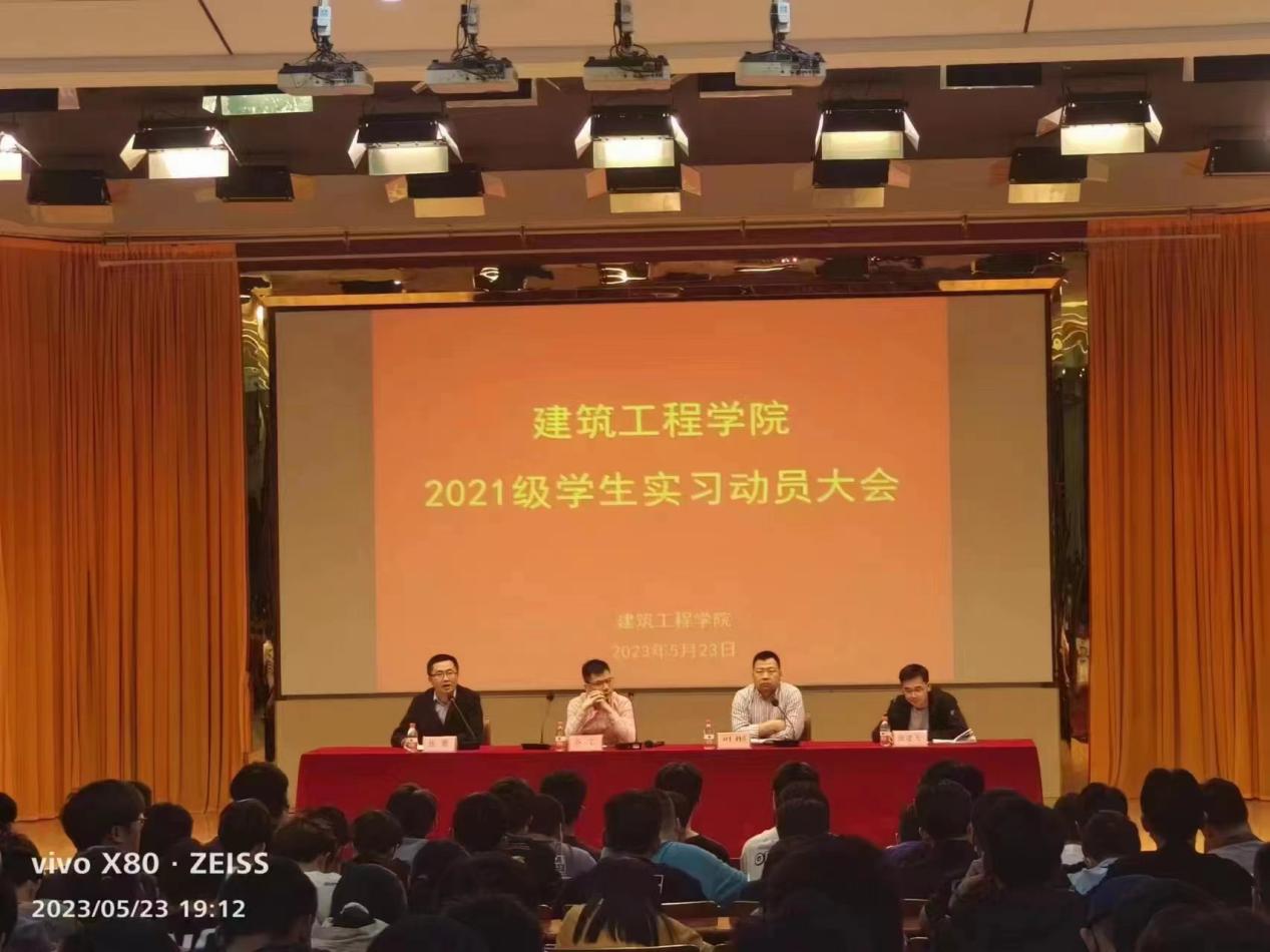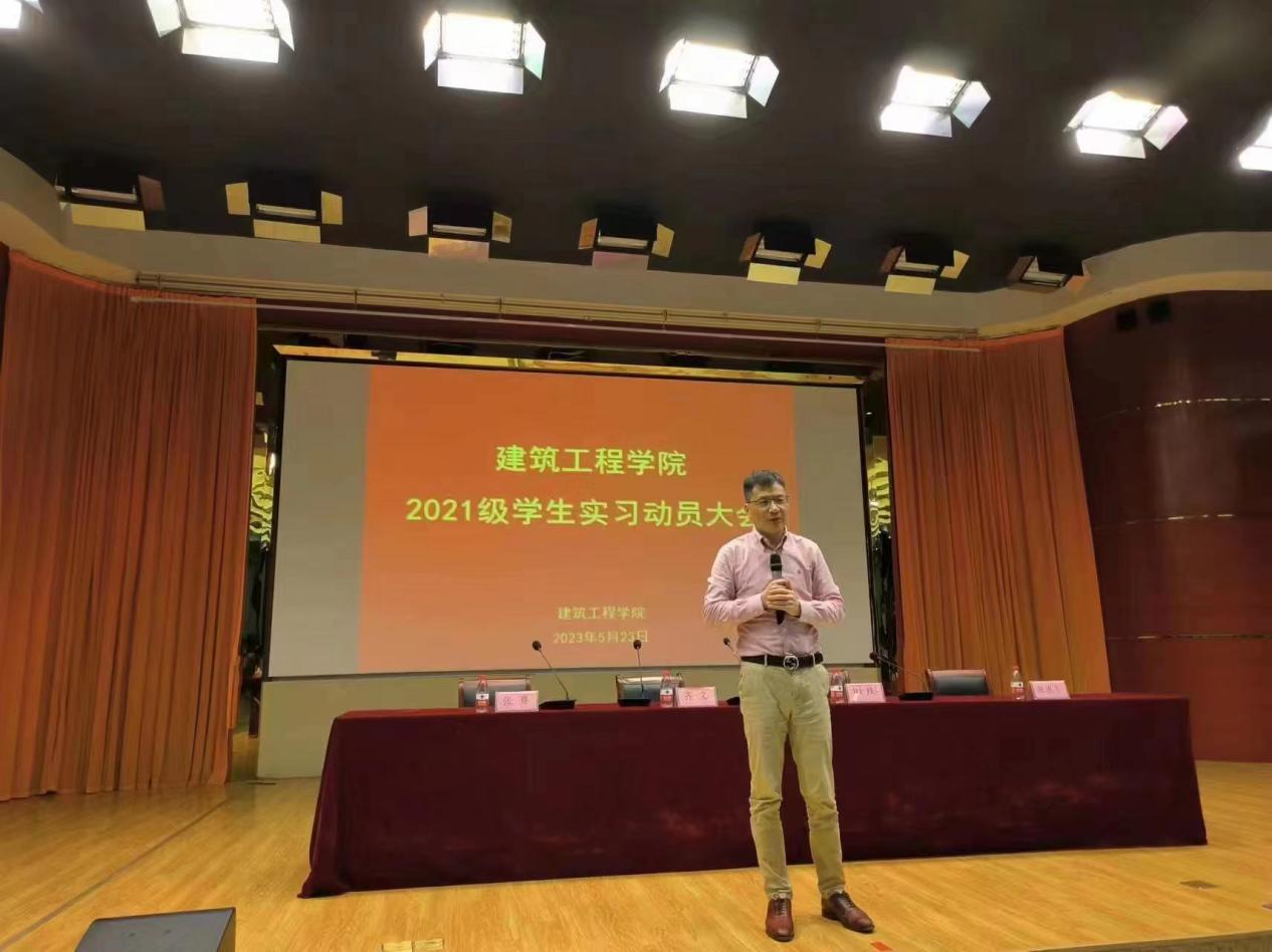5月23日,建筑工程学院在图文中心1楼报告厅召开2021级岗位实习动员大会,党总支副书记叶彤、副院长张赛、教学管理人员、21级辅导员及全体2021级学生参会,会议由叶彤主持,特邀安庆市装饰业协会会长齐文参会并做讲座。
