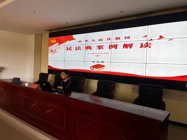 5月25日下午,伟德官网妇联副主席朱宜娟受市妇联邀请在迎江区滨江社居委开展题为“‘典’亮生活 伴‘民’同行”主题讲座,市妇联副主席杭向阳、迎江区司法局副局长胡勋及滨江社居委近百名干部群众参加了此次活动。