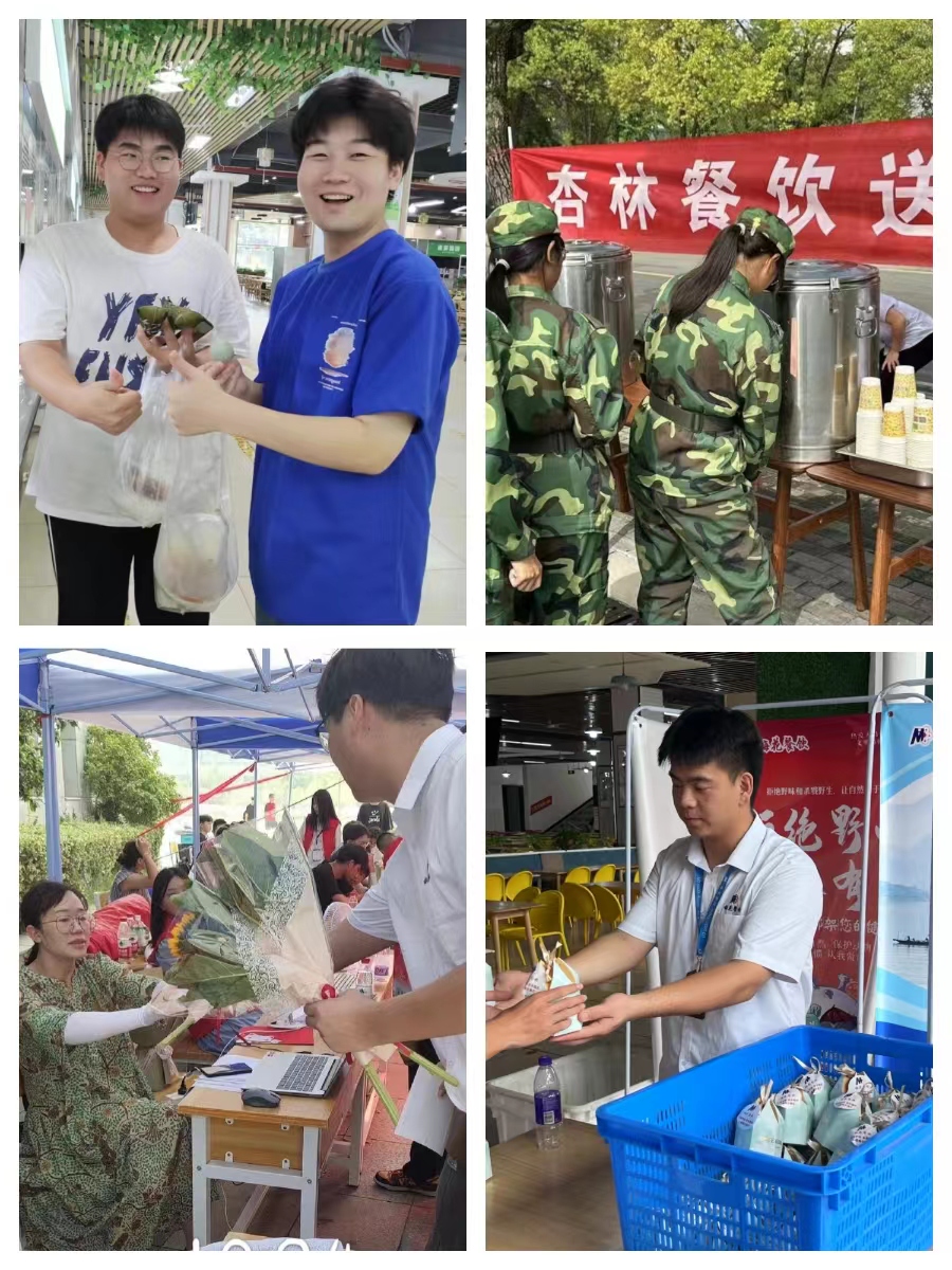 端午节、中秋节我们为就餐师生派送绿豆糕、粽子、月饼等食品,举办抽奖活动;在教师节和妇女节期间,我们开展了派送鲜花、免单等活动;迎新期间,为报到的新生及家长免费供应开水;新生军训期间,食堂还派送酸梅汤、绿豆汤等解暑饮品。