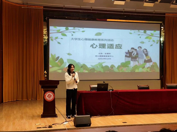 活动中,余老师通过和学生互动以及问卷了解了新生们自入学以来的适应情况。她从生活适应、学习适应、人际适应以及未来规划四个方面开展讲解,讲解初入大学所带来的不适应之处,并结合学生发展状况给出针对性的解决方案。同时,余老师希望同学们积极关注个人心理健康,正确看待心理健康问题,在遇到心理问题时,要及时向辅导员、校心理健康教育中心求助,以积极、主动的姿态去直面问题、解决问题,收获美好的大学生活。