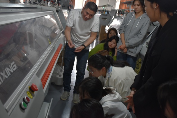 10月26日,服装设计与工艺专业 112 名学生在专业教师的带领下,前往潜山市金诚永泰针织公司开展见习活动。见习期间,工作人员向同学们详细介绍了生产设备和针织服装制造工艺,并与同学们就生产工艺进行了深入交流。在技术人员的指导下,同学们分组上机实操,完成了针织小样的设计与织造。