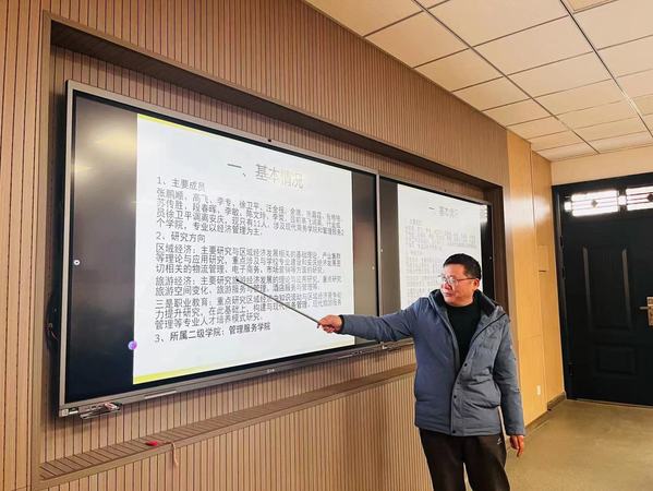 新年伊始,管理服务学院全体师生以饱满的热情投入到文旅康养专业群建设的各项工作中去,1月24日下午,在3号教学楼314会议室召开在建集体项目建设研讨会,管理服务学院院长陈颖及三个在建的集体项目以及“区域经济研究所”科创平台项目成员参加了研讨会,该院教学工作负责同志主持会议。
