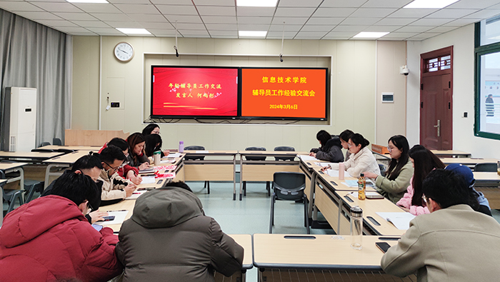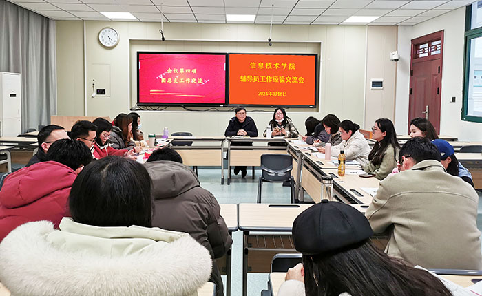为加强学工队伍建设,促进辅导员业务能力提升,3月6日下午,信息技术学院在2号教学楼303教室举办辅导员工作经验交流分享会。该院党总支副书记陈富汉主持交流会,学生管理科、团总支工作人员及全体辅导员参加会议。
