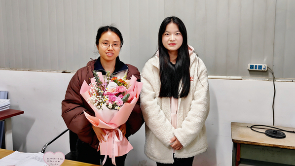 节日当天,我院学生会的同学们怀着感恩与祝福的心,将精心准备好的鲜花和节日贺卡送到学院每一位女教师手中,表达了学生们对老师们无私奉献、默默耕耘的感恩之情,收到鲜花的女老师们面露笑容,倍感欣喜与温暖,浓浓的花香让教室里洋溢着节日的氛围。同时,同学们通过抖音短视频形式送上节日祝福,线上线下齐互动,一起共庆美好节日。
