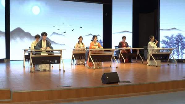 经典诗词,吟咏着底蕴深厚的民族文化。学生表演的情景剧《诗词里的中国》,带我们穿越历史,品味古典文学中的精华。团扇是蕴含我国传统文化的一种特殊艺术形式,造型简约,现场的师生们手持团扇,蘸取颜料,体验着手工制作带来的快乐。通过巧手,一柄柄清新淡雅的团扇渐渐展现,大家纷纷举起亲手绘制的团扇合影留念。