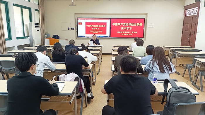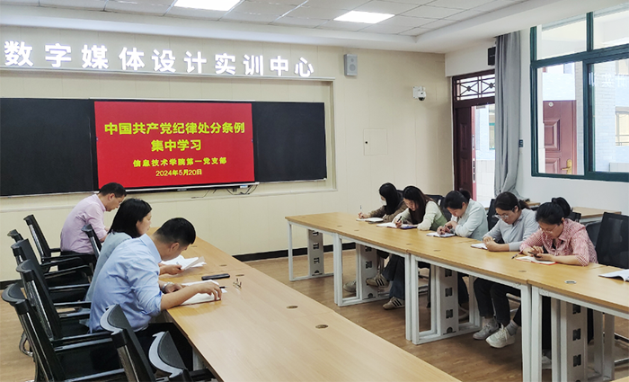 为全面贯彻落实党中央关于在全党开展党纪学习教育的相关要求,引导党员进一步严明政治纪律和政治规矩,5月20日下午,信息技术学院第一、第二党支部分别在2号教学楼206教室和203教室,召开全体党员大会,集中学习《中国共产党纪律处分条例》。